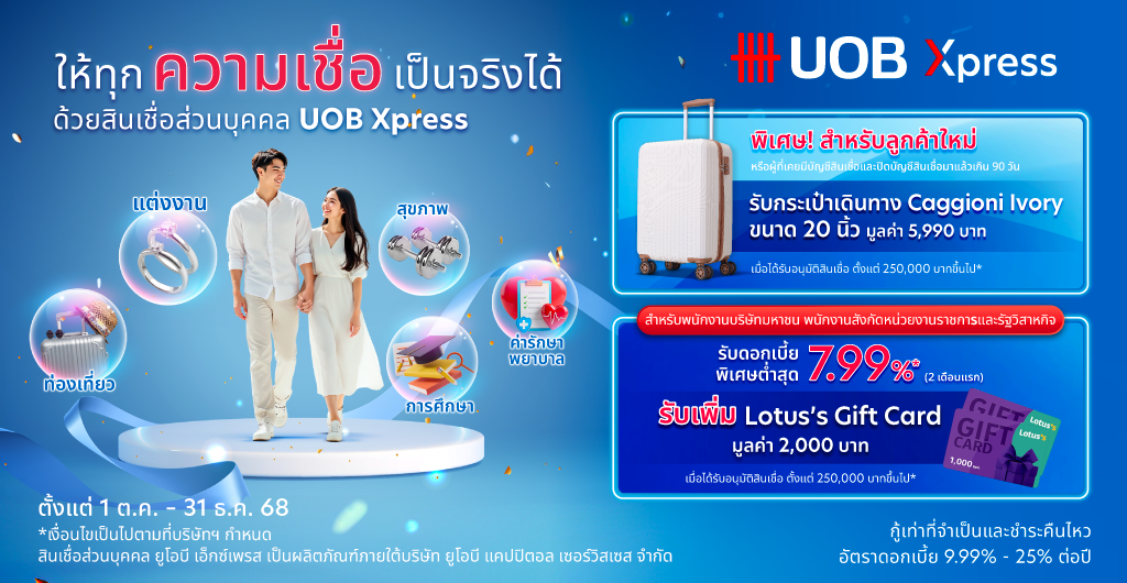 สินเชื่อส่วนบุคคล ยูโอบี เอ็กซ์เพรส รู้ผลอนุมัติไว